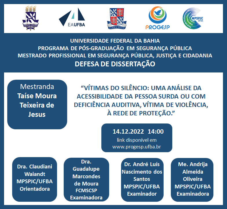 Enviado por masa em ter, 13/12/2022 - 12:20 Link da sala virtual A defesa contará com intérpretes de libras. Data: quarta-feira, 14 Dezembro, 2022 - 14:00